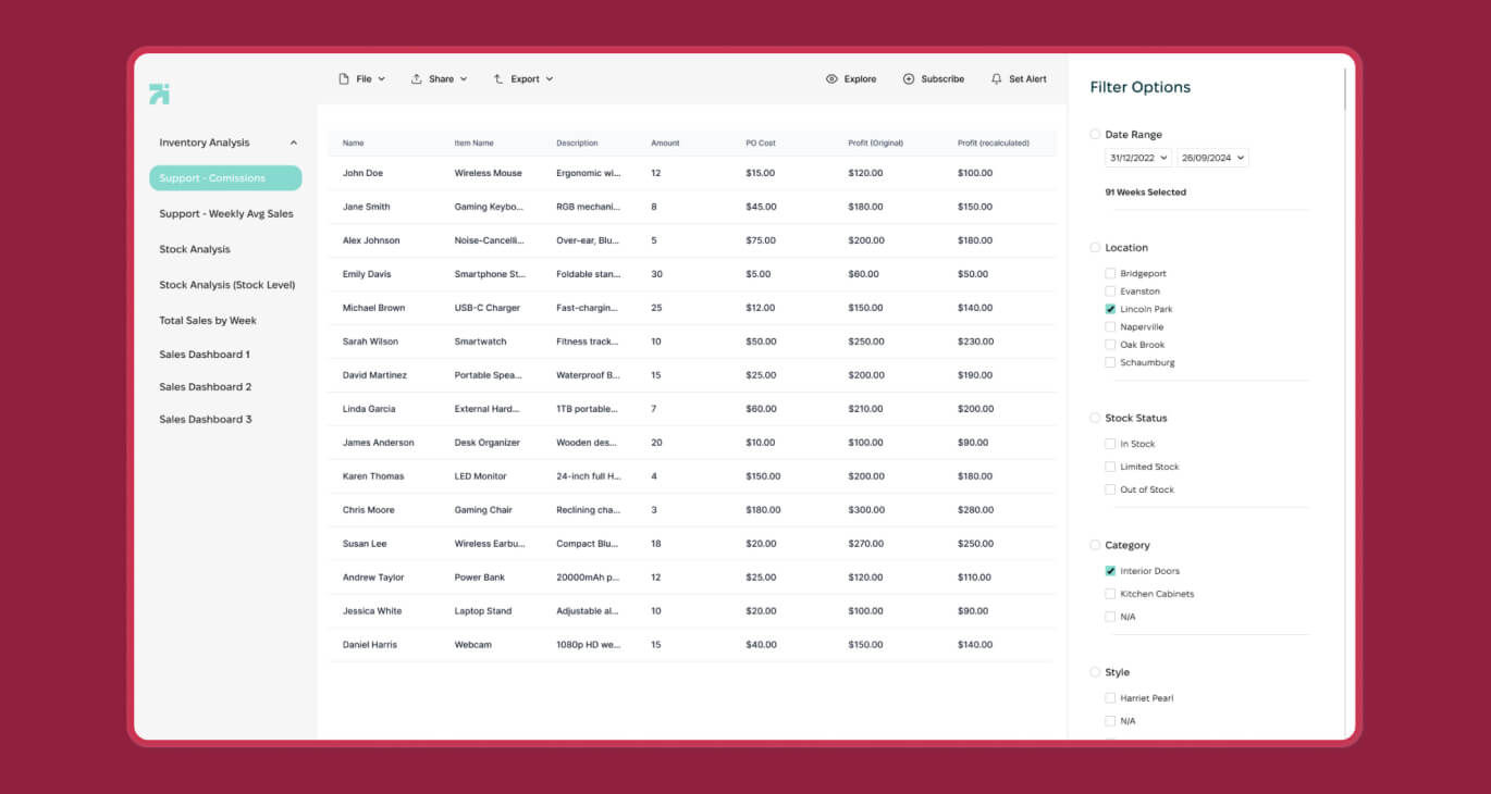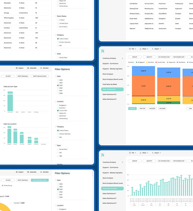 A company specializing in home improvement products faced significant challenges with their inventory analysis processes. Relying on manual data integration from Netsuite and Excel, the system was inefficient, error-prone, and costly. Our team developed a custom reporting solution using Power BI, integrating with Netsuite through its "Saved Searches" feature. This solution streamlined the data export process, significantly reduced reporting times, and lowered costs, ultimately enhancing the client’s inventory analysis and decision-making capabilities.