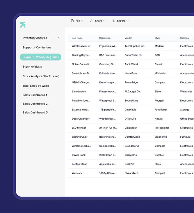 Though the client maintains a web shop, most of their inventory and accounting management is done through Netsuite. Their inventory and reporting processes were labor-intensive, requiring manual data export from Netsuite into Excel, where it was combined with other spreadsheets. This approach was time-consuming, error-prone, and lacked scalability because of:
